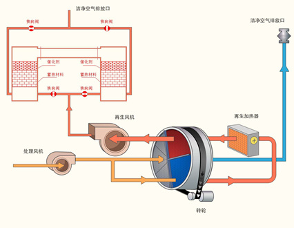 把有機廢氣加熱到760℃以上,將有機廢氣氧化生成CO2和H2O,從而凈化廢氣,并回收分解時所釋出的熱量,以達到環保節能的雙重目的,是一種用于處理中高濃度揮發性有機廢氣的節能型環保裝置。